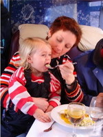 Zwischen 12.00 und 14.00 Uhr wurde die Crew nach einem Sektempfang von Lars Demuth, Chefkoch des Maritim Hotels in Frankfurt, mit einem exklusiven Vier-Gänge Menü verwöhnt. Auf dem Menüplan standen unter anderem Salate, Selleriesuppe mit schwarzem Trüffel sowie Seezunge in Meerrettich. "Wirklich ein Genuss von Anfang bis Ende", war die Meinung aller. Gesellschaft leistet ihnen die beliebte hr1-Moderatorin Marion Kuchenny.