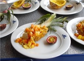 Das Dessert: tropischer Fruchtsalat in Babyananas